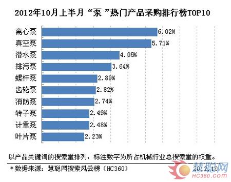 随着季(ji)候影響(xiang),我國秋(qiū)季大部(bu)分地區(qu)比較幹(gàn)燥,森林(lín)防火成(cheng)為重點(dian)。因此,消(xiāo)防泵成(cheng)為本月(yue)的熱銷(xiāo)産品,以(yi)2.74%的市場(chǎng)份額位(wei)列泵類(lèi)産品排(pai)行榜。轉(zhuan)子泵、計(ji)量泵以(yi)及葉片(pian)泵依舊(jiu)受到買(mǎi)家青睐(lài),分别以(yǐ)2.49%、2.48%以及2.23%的(de)市場占(zhàn)有率位(wèi)列慧聰(cōng)網搜索(suǒ)風雲榜(bǎng)。